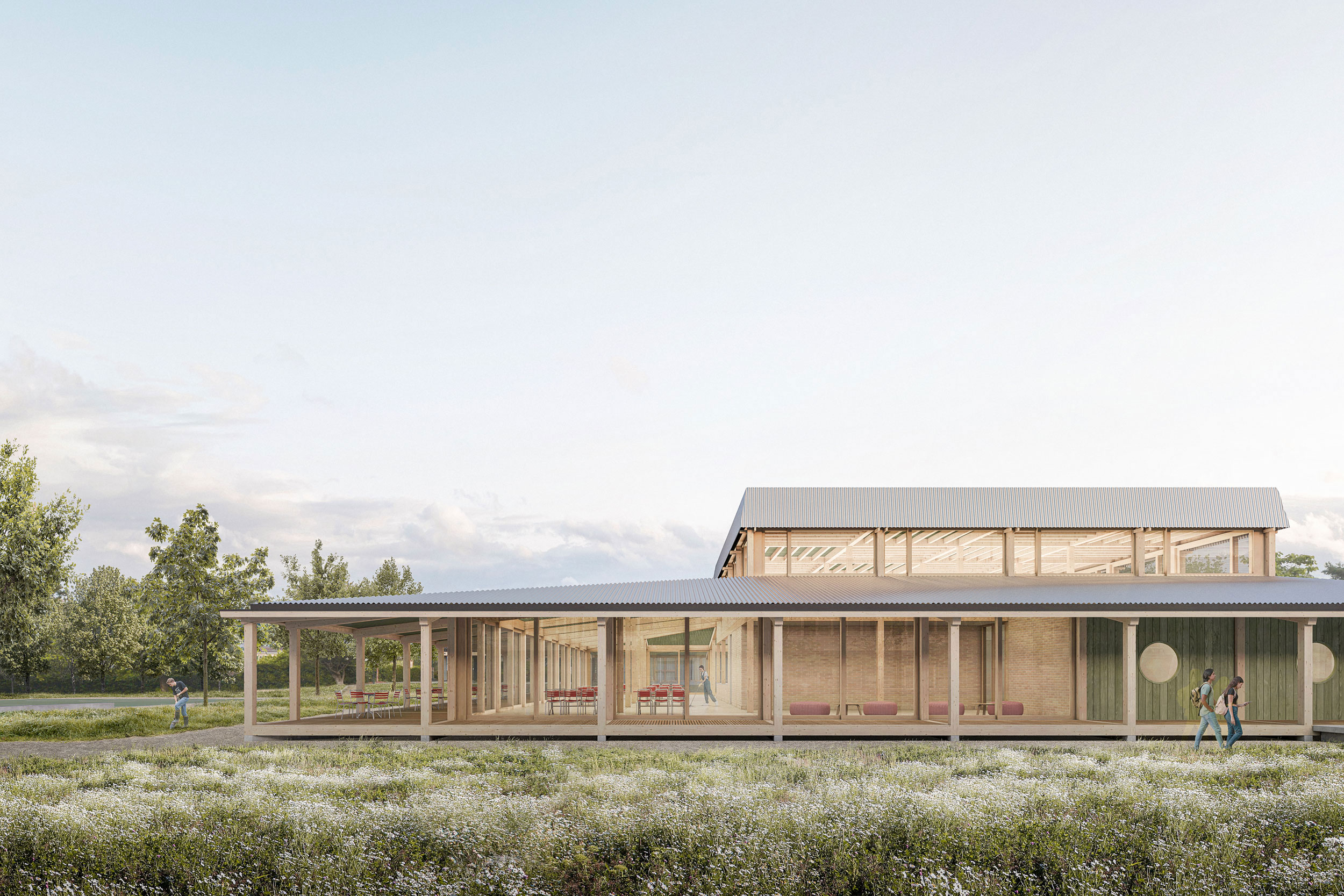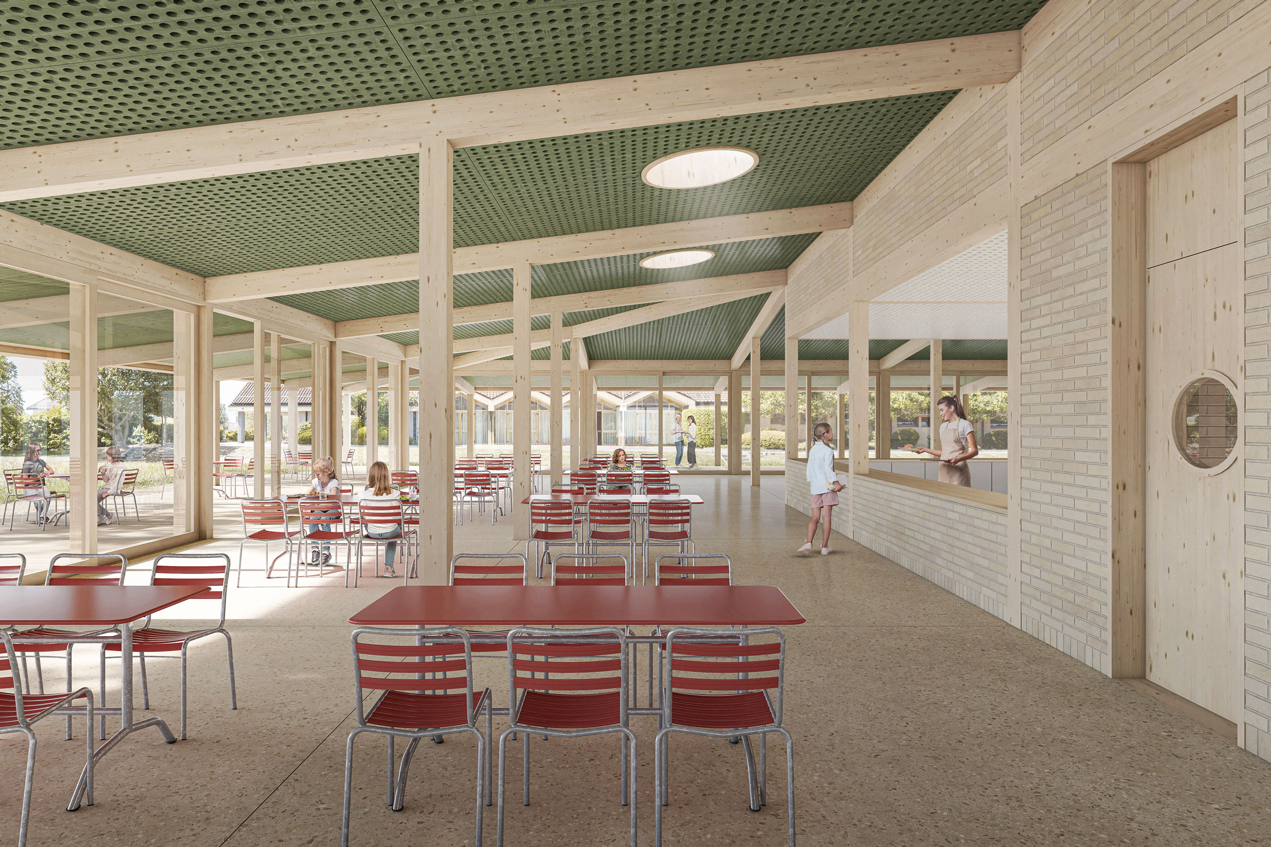 Contenu entre un axe routier et le lac, le périmètre d’intervention aspire à la création d’une nouvelle centralité. La traversée entre le village et le centre scolaire des Voiles du Léman, nécessite un travail fin d’intégration des flux existants et d’amélioration de la sécurité et de la qualité des parcours. La réorganisation du périmètre des Voiles du Léman propose une nouvelle centralité – un nouvel espace « public » dynamique au cœur des activités scolaires et sportives. Le promeneur peut ainsi parcourir les lieux et y trouver des activités le week-end ou en dehors des heures d’école. Cette dualité – espace scolaire vs espaces de rencontres, de vie sportive, d’activités communautaires – reformule la vision de l’éducation en lui apportant une nouvelle lecture, plus actuelle et adaptée à tous. Le phare constitue le repère principal au coeur du site et abrite trois élément du programme sous un seul toit: la cantine, l’infirmerie et l’espace Univers 1028. Accessible par une seule et unique entrée, le grand hall au rez-de-chaussée distribue l’infirmerie, l’espace Univers 1028 à l’étage, et la cantine en enfilade.